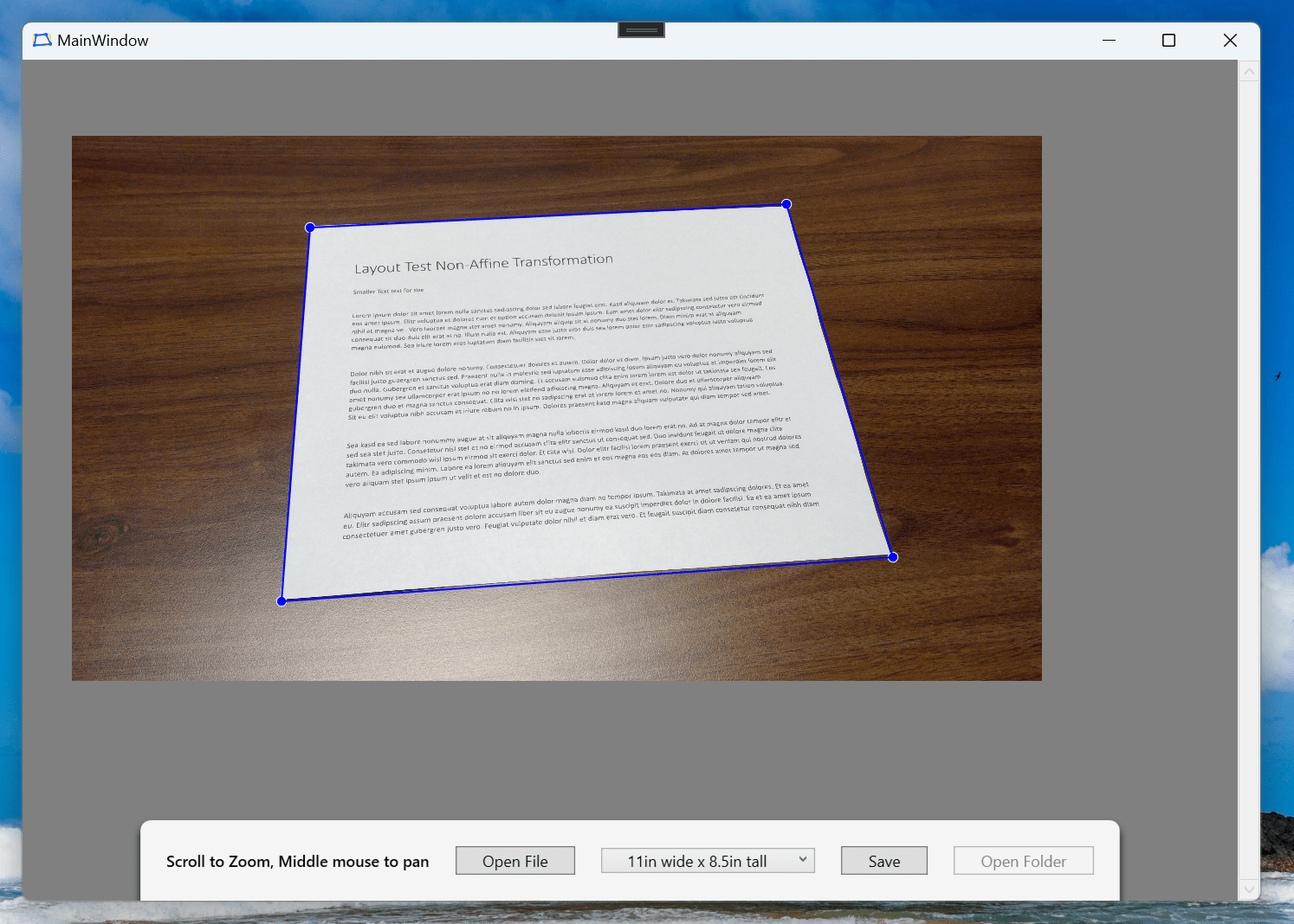 Correcting perspective distortion yet again with another simple WPF sample project. I find this project better in a few different ways: