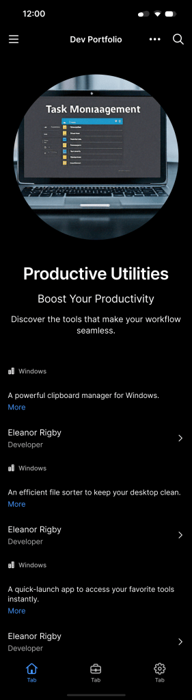 A portfolio for a Windows developer creator who has built several utilities which increase users productivity