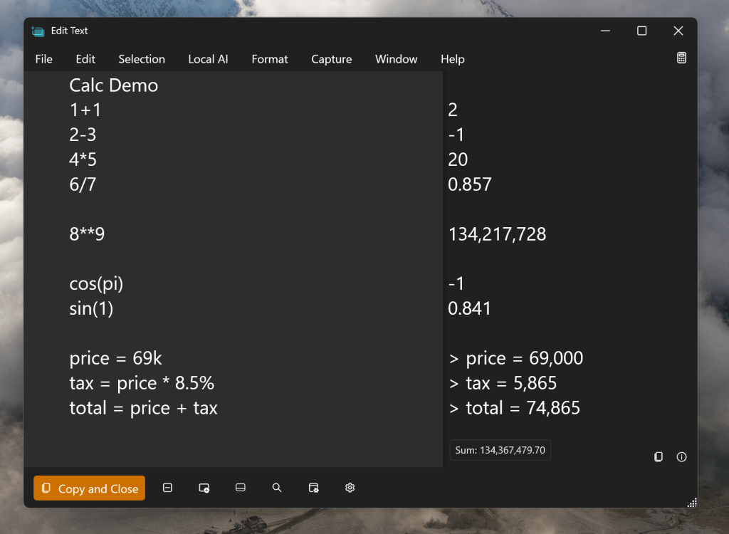 Something I’ve wanted in Text Grab for awhile now is the ability to do basic math operations. I loved this as a tool in OneNote and wanted to do even more with updating, aggregation and variable names. Another major inspiration for this feature was the excellent Mac app, Soulver: https://soulver.app/