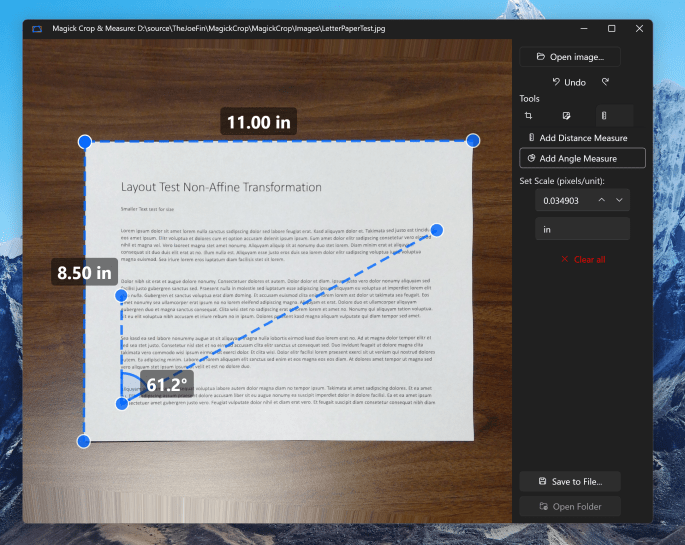 I'm excited to share the new features of Magick Crop & Measure, an app that makes it easy to edit images and take measurements without needing expensive tools. When I was working as a mechanical engineer I came across tools which could do optical measurements and since then I always wanted to have the same … Continue reading Correct perspective then measure!